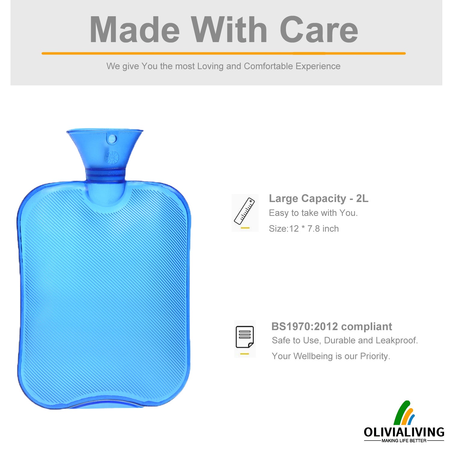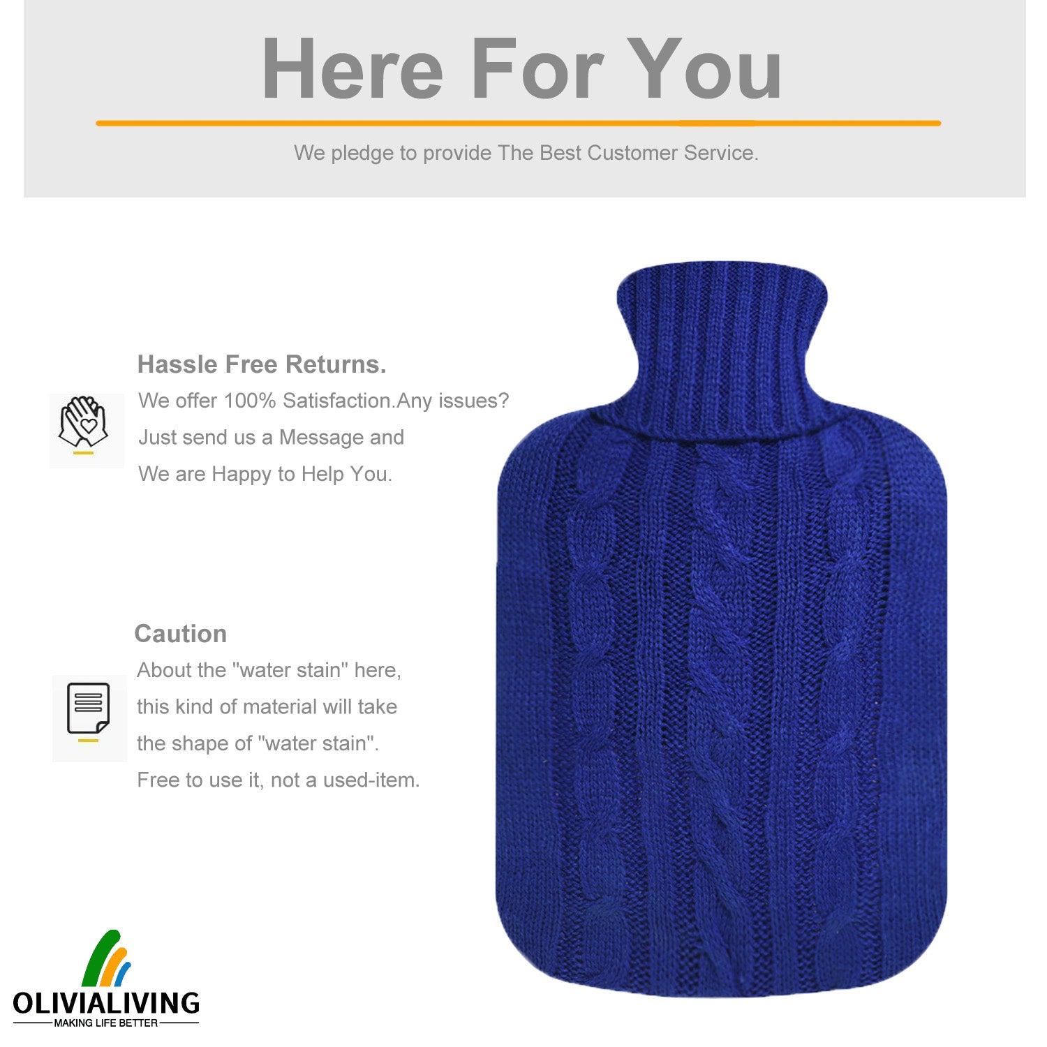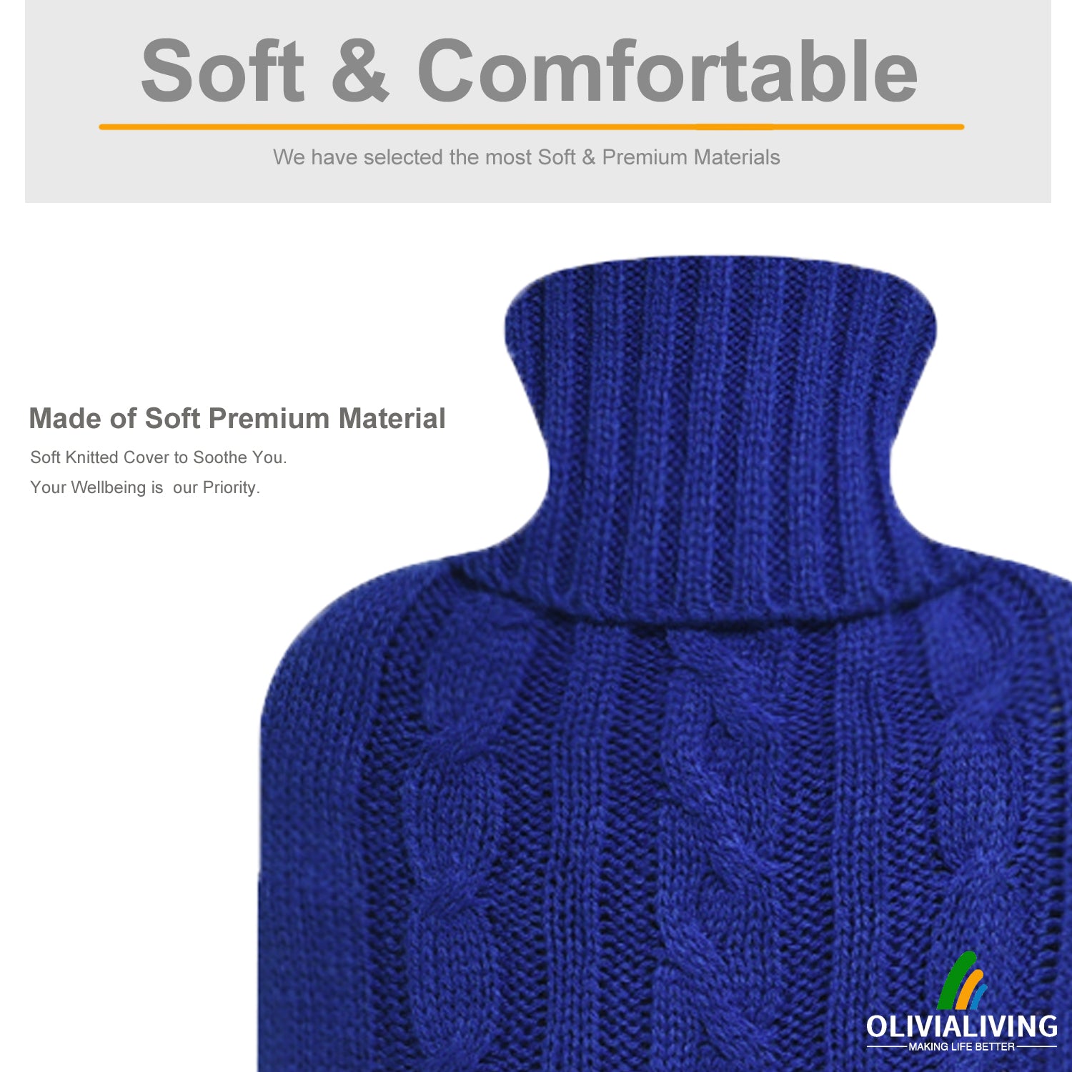OliviaLiving Hot Water Bottle with Knit Cover for Back Pain Relief , 2L