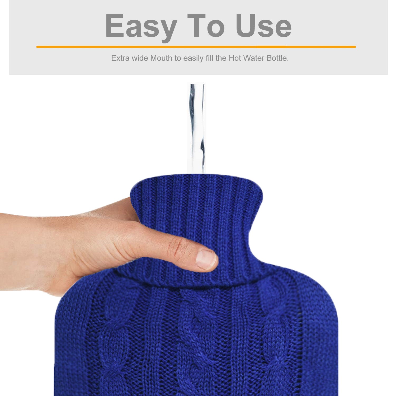 The Hot Water Bottle with Knitted Cover has been a lifesaver for dealing with pain relief and staying warm during colder nights. The 2-liter capacity is perfect, holding enough hot water to provide lasting warmth and comfort whether I’m using it for menstrual cramps, muscle pain, or just to warm up my bed.The knitted cover is a great touch—it’s soft, comfortable against the skin, and adds an extra layer of protection from the heat. The grey color is neutral and stylish, blending well with my other bedding and home accessories.This hot water bottle is versatile, working well for both hot and cold compresses. The material feels durable and well-made, and it doesn’t leak, which gives me peace of mind when using it in bed. It’s also just the right size for tucking under my feet or holding against my stomach.Overall, the Hot Water Bottle with Knitted Cover is a fantastic product. It’s practical, reliable, and comfortable to use, making it a must-have for anyone looking to relieve pain or stay warm during chilly nights.