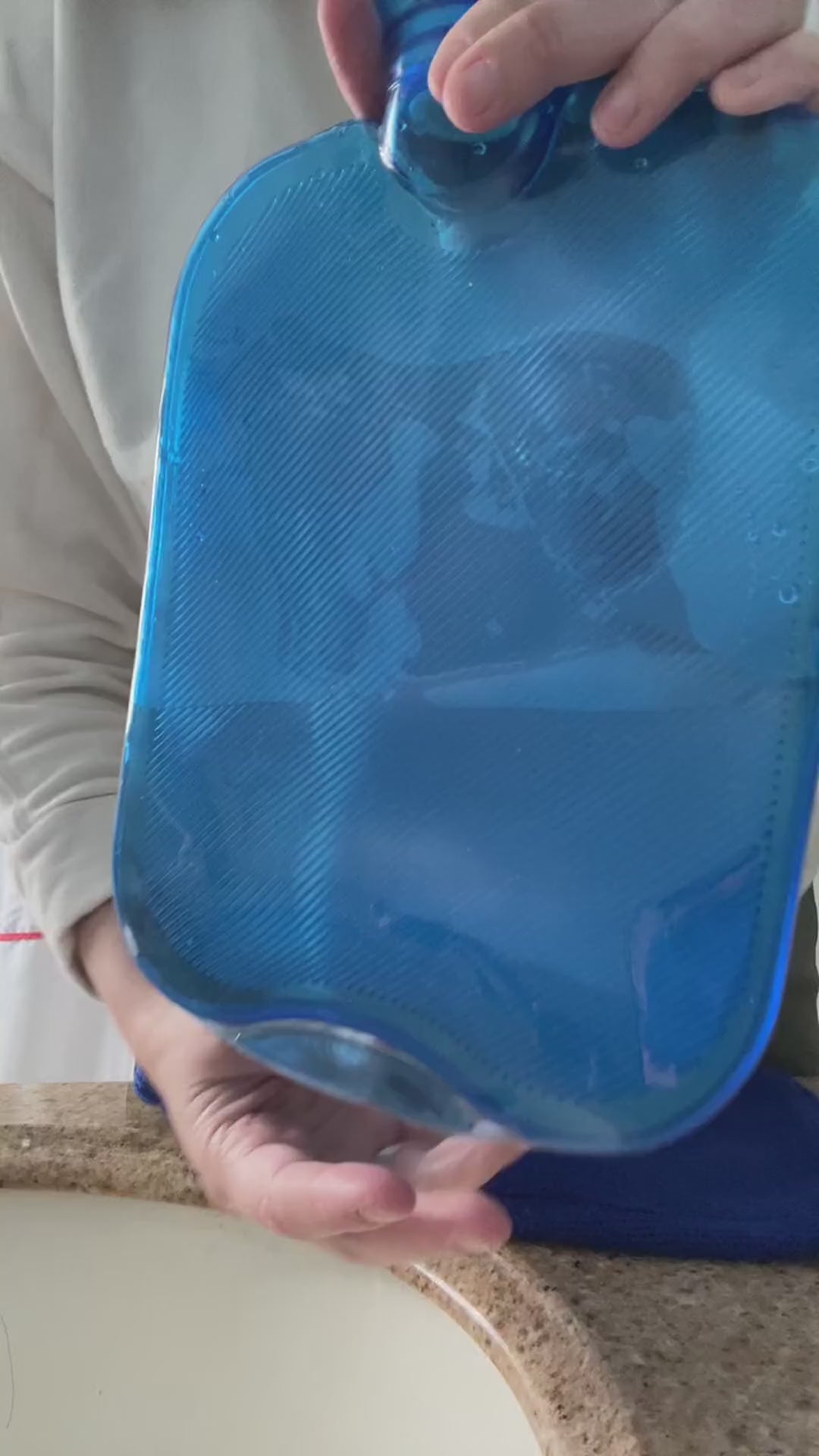 2. Remember to only inject 2/3 of the hot water in the hot water bottle. It should not be filled to avoid the expansion of the bag. When the cap is screwed, the hot water overflows and burns.