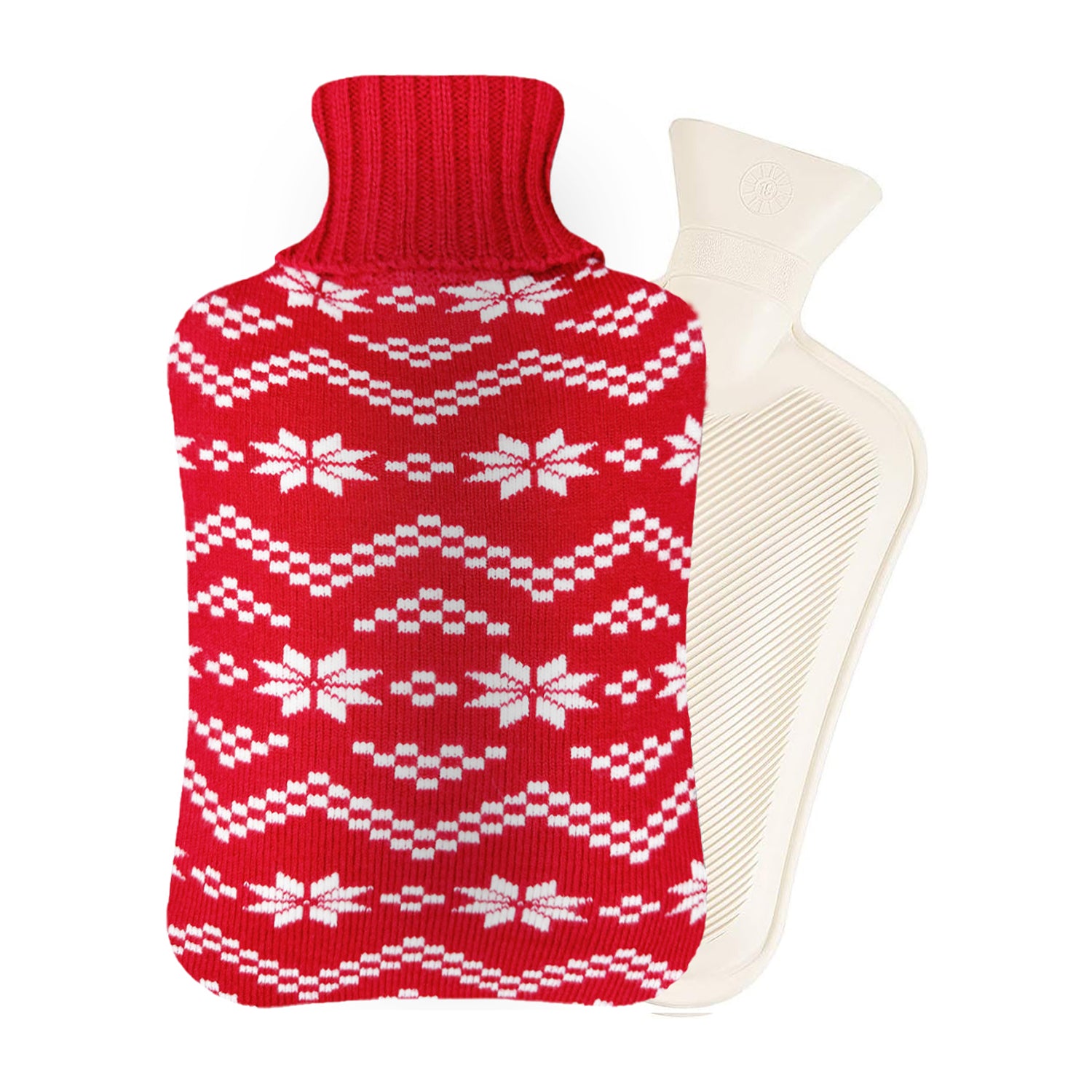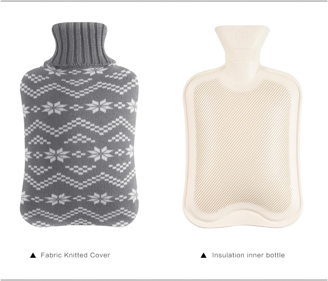 OliviaLiving Hot Water Bottle with Snowflake Knit Cover, 2L