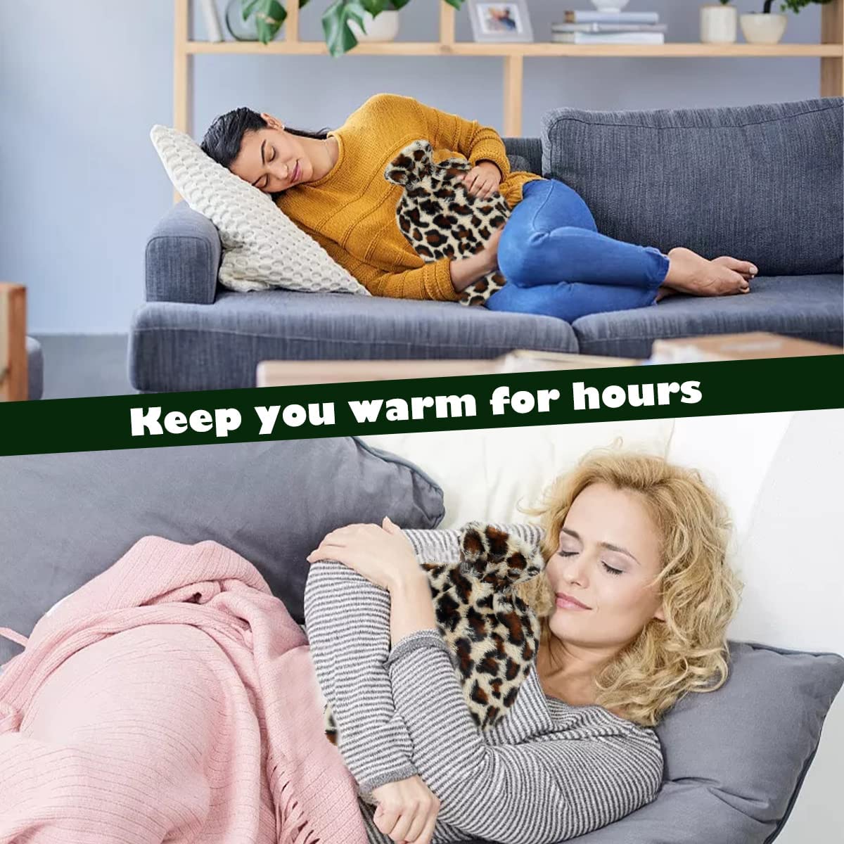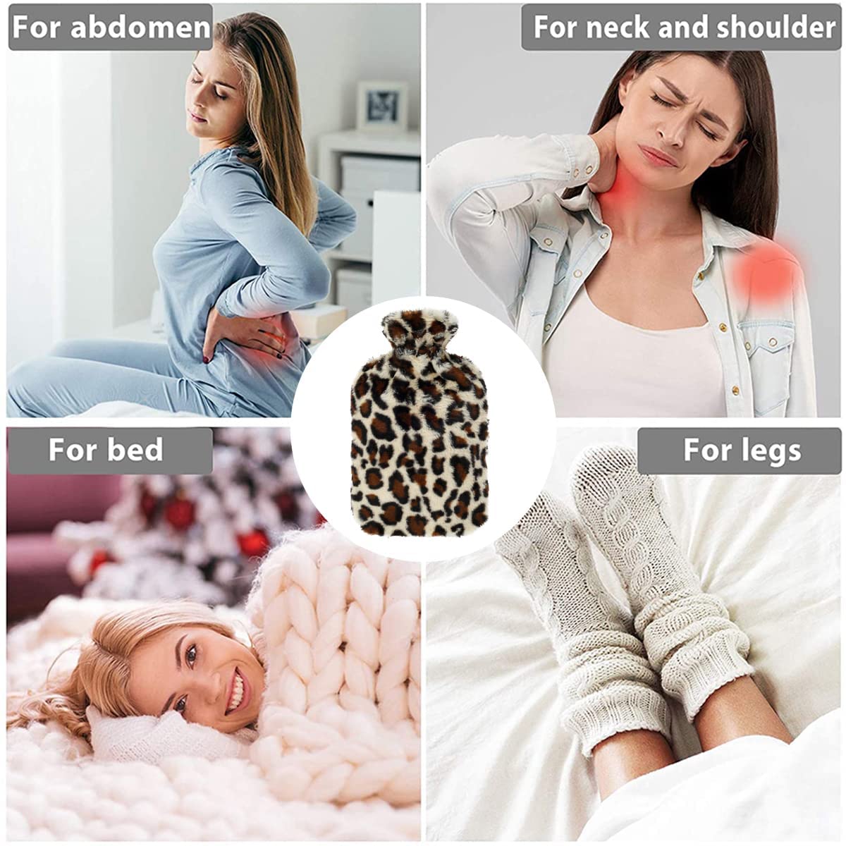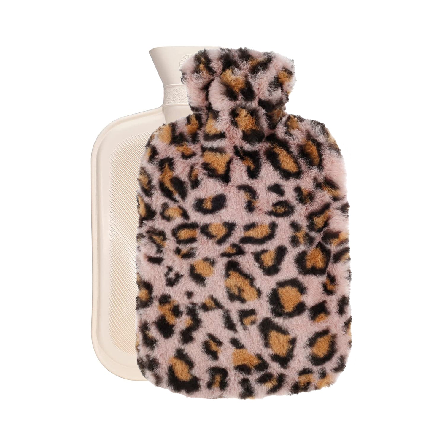 Hot Water Bottle for Pain Relief with Plush Leopard Print Cover, 2L