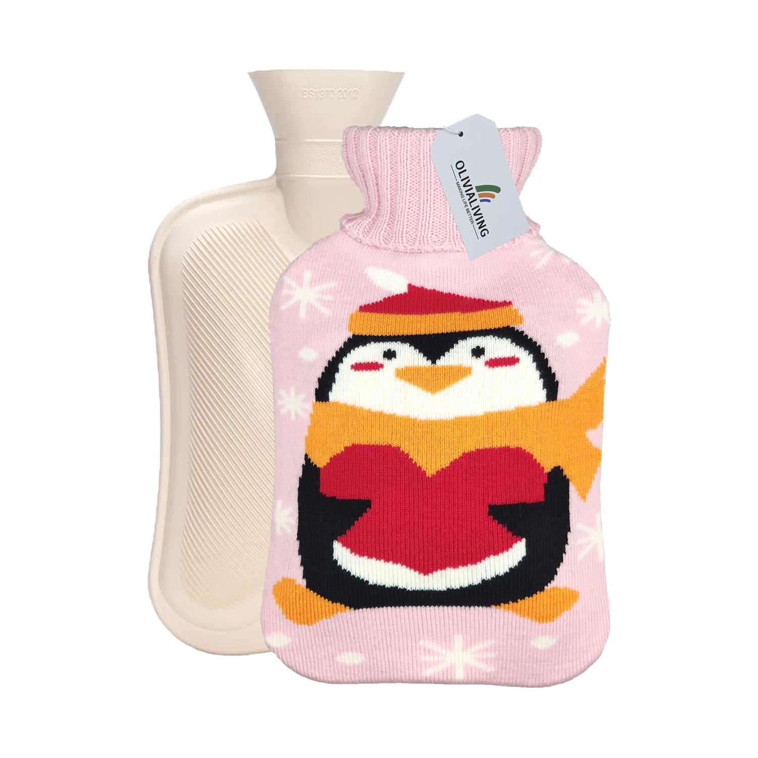 OliviaLiving Cozy Nights Hot Water Bottle with Cute Penguin Cover, 2L