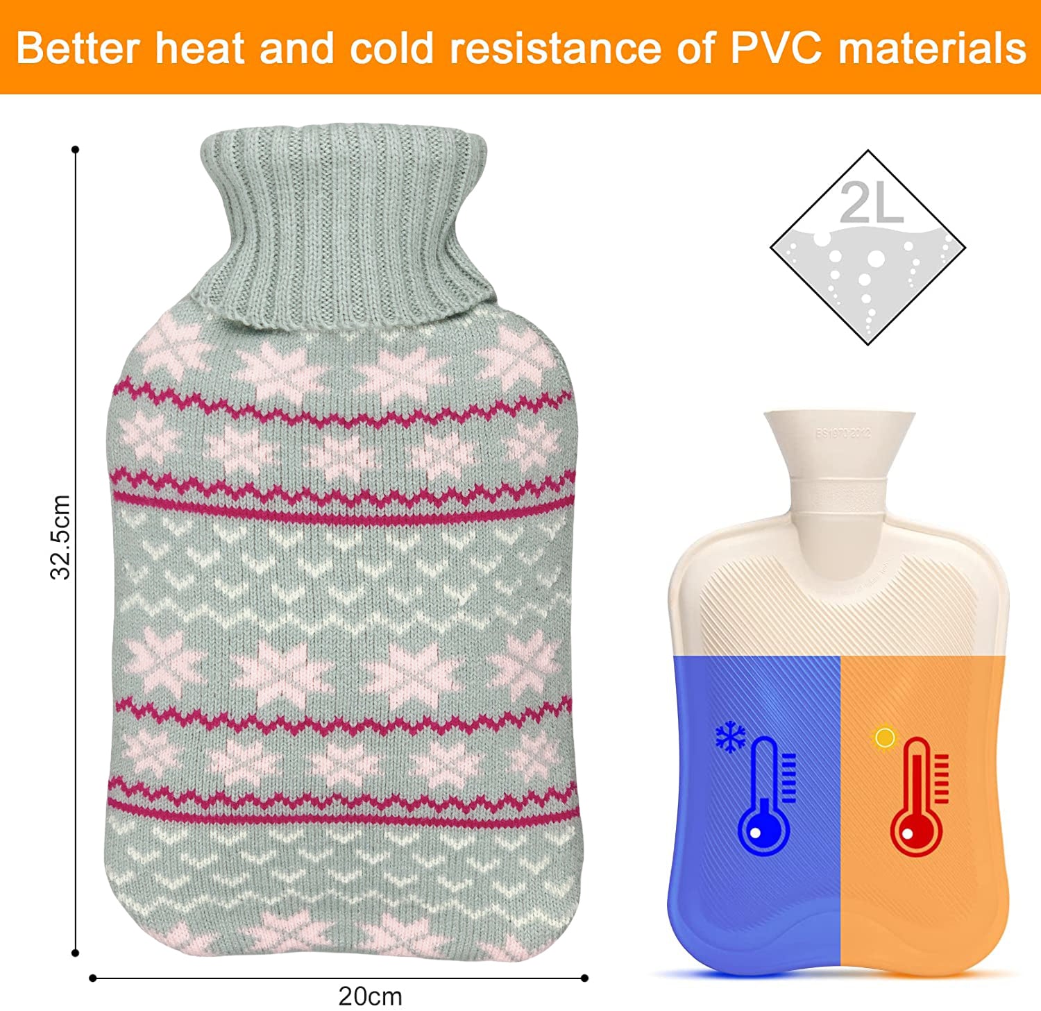 [Premium Material] -- The product is made of premium Material Compared to the traditional rubber hot water bottles, this one is more durable, with a comfortable soft cloth cover and longer lasting insulation.