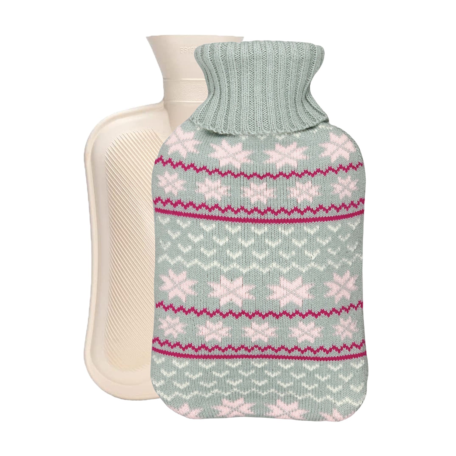 OliviaLiving Classic Rubber Hot Water Bottle with Classic Snowflake Cover for Pain Relief, 2L