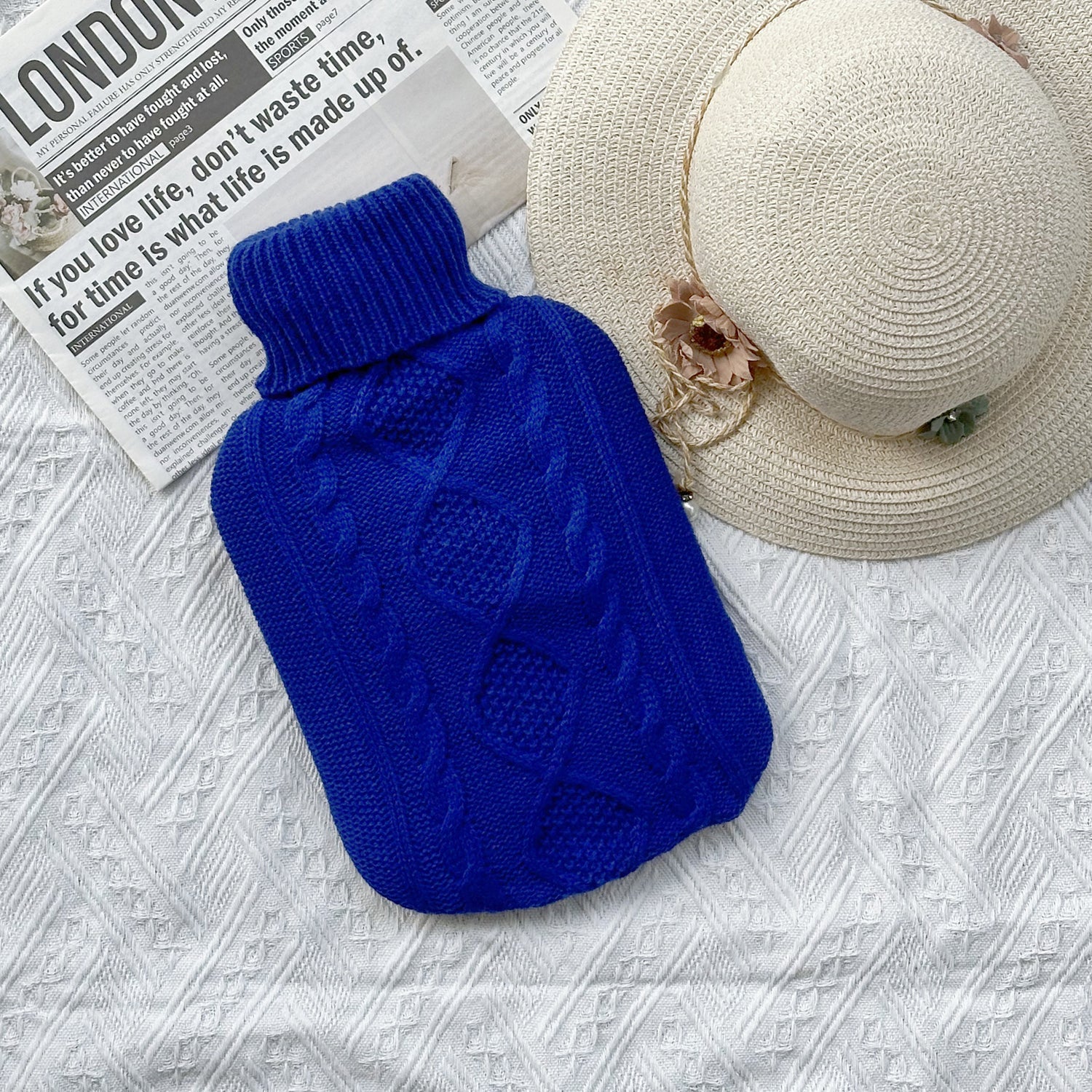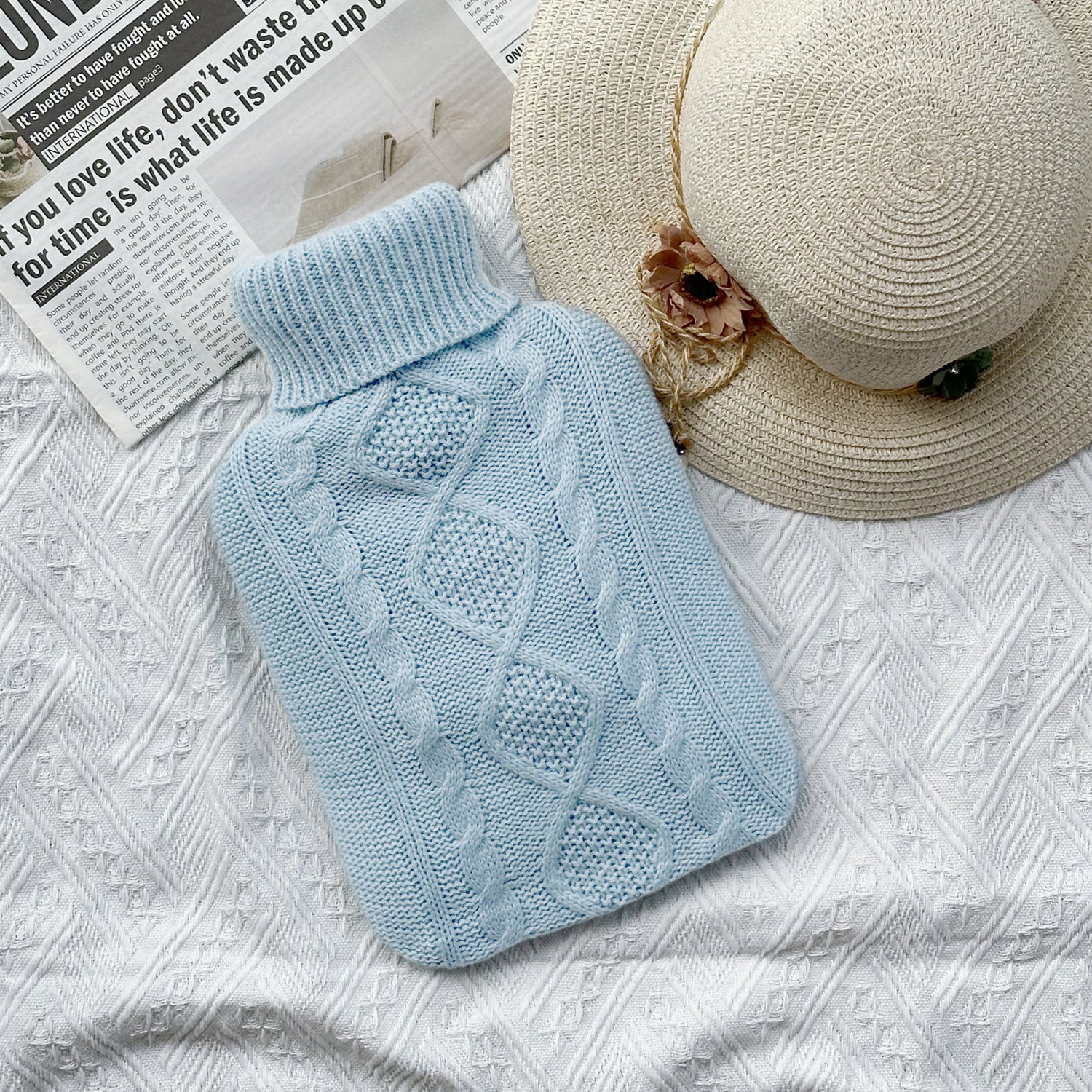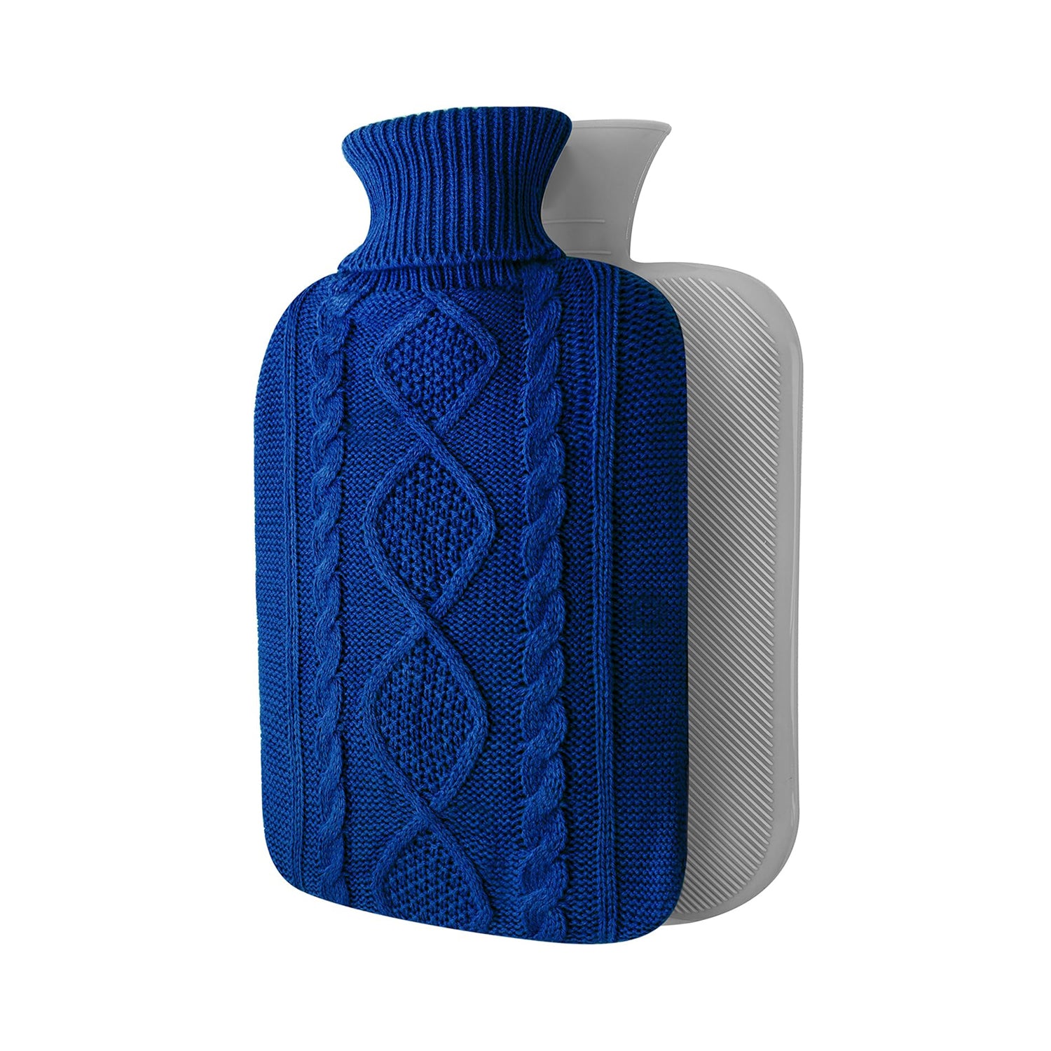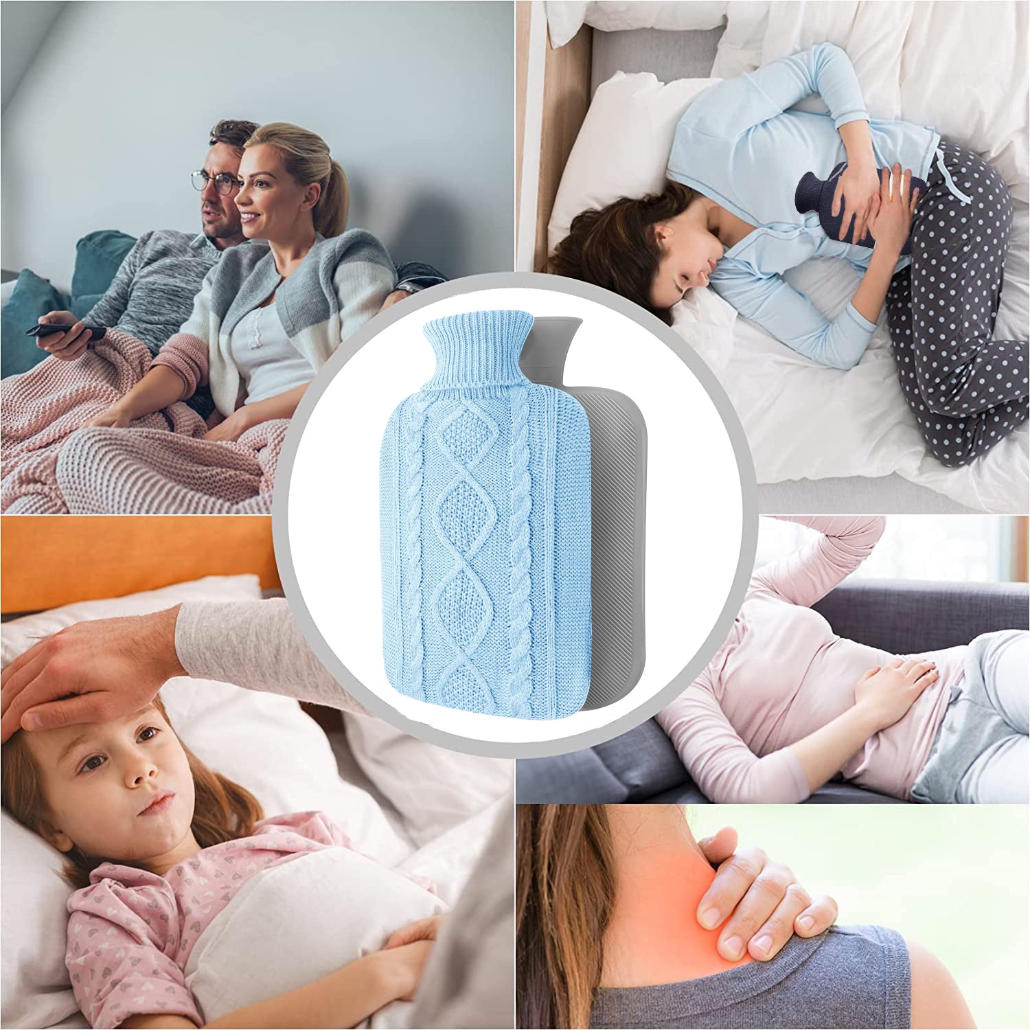 Had decided to get this on a whim for my elderly MIL who has recently complained of aches and pains in her neck and I wanted to get her a reusable water bottle heat pack. The baby blue is one of her favorite colors, so that's a plus. The knitted cover is SUPER soft and adorable. I did notice that the cable-knit stitching is only on one side; the other is plain/blank. It's a stretchy knitted cozy that can be removed off the bottle if you needed to take it off for spot cleaning. Other than that, it's a solid, well made rubber water bottle that you'd usually see. I'd recommend this, especially if you want to to do some self-care in style.