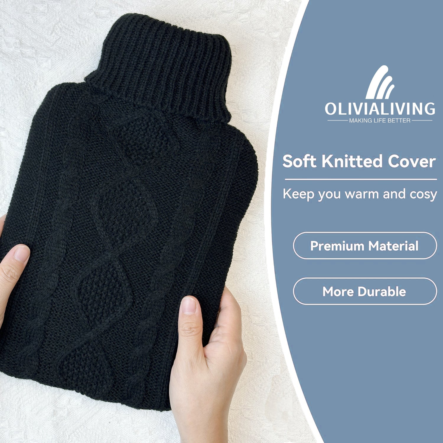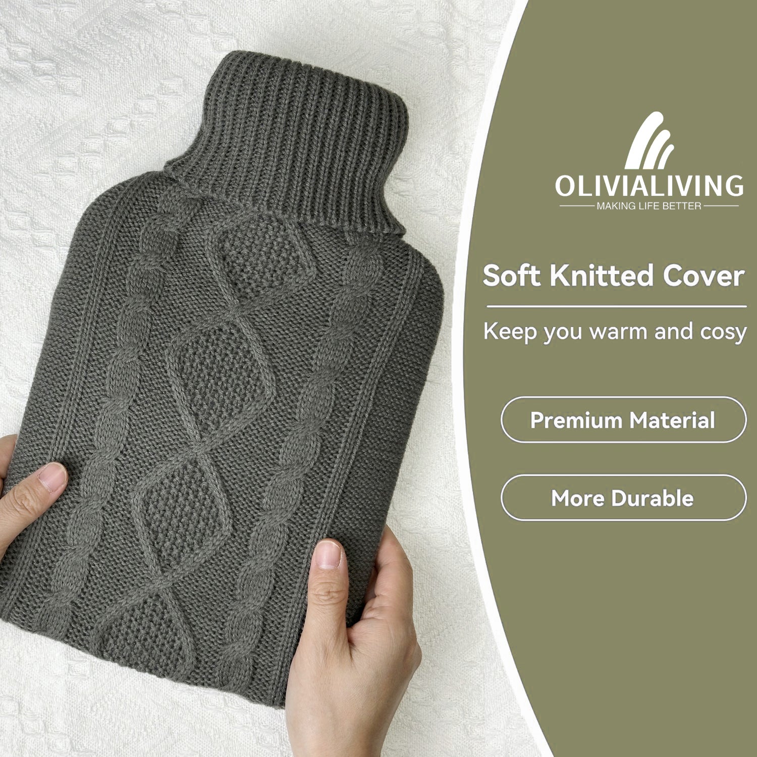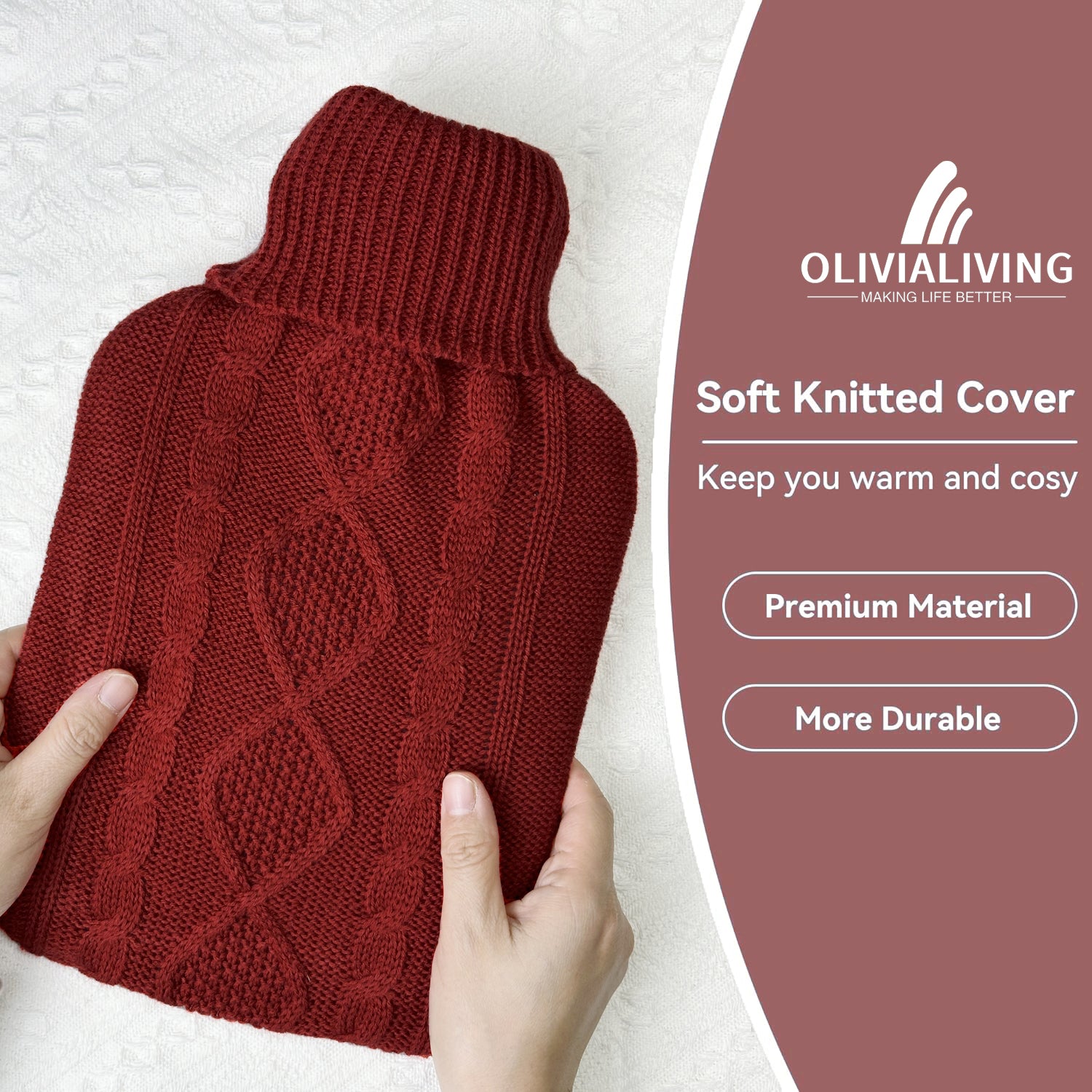 OliviaLiving Classic Knitted Cover Hot Water Bottle for Winter Nights, 2L