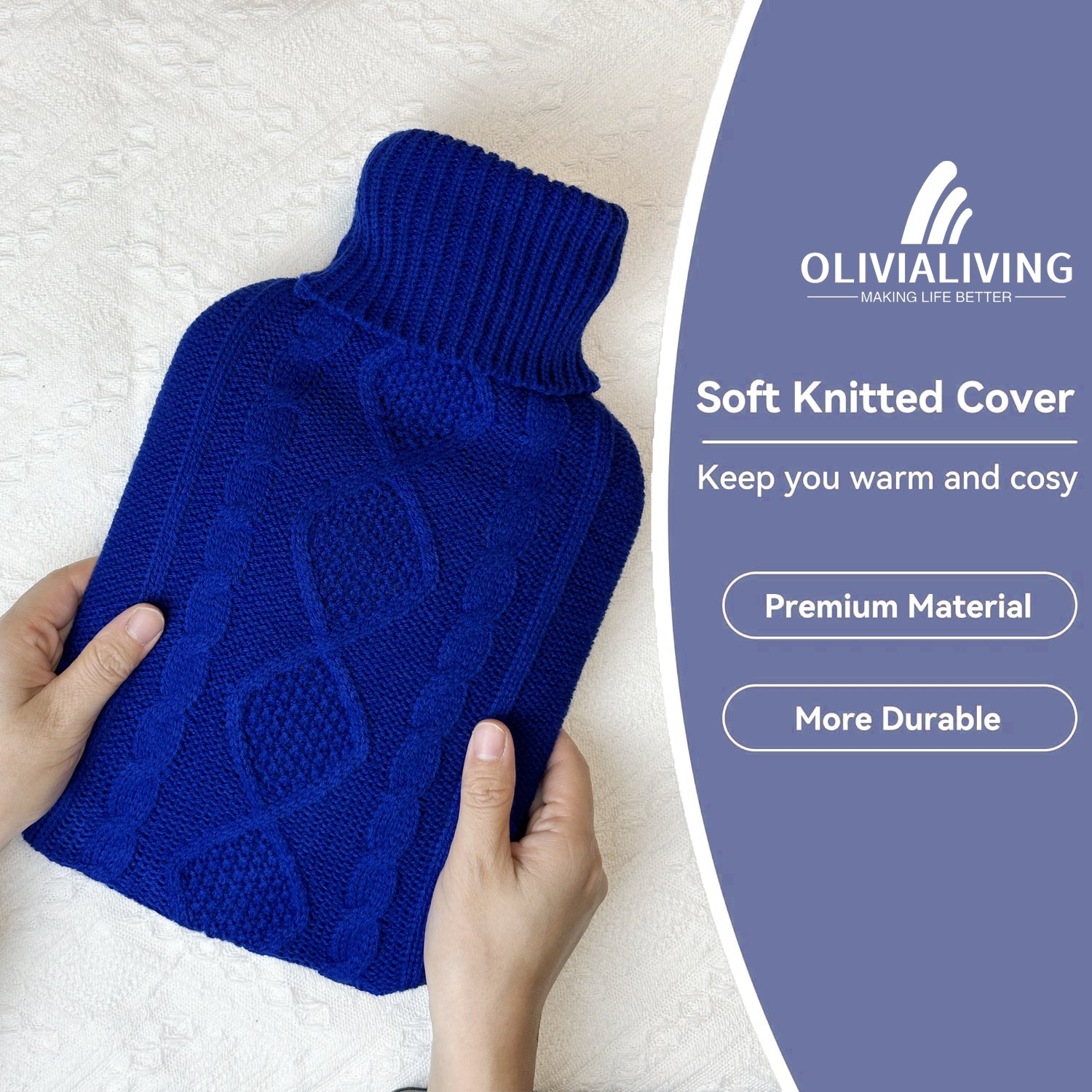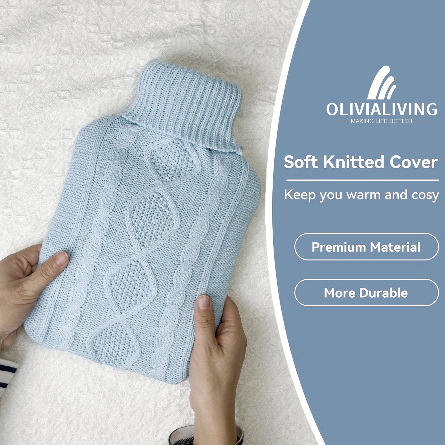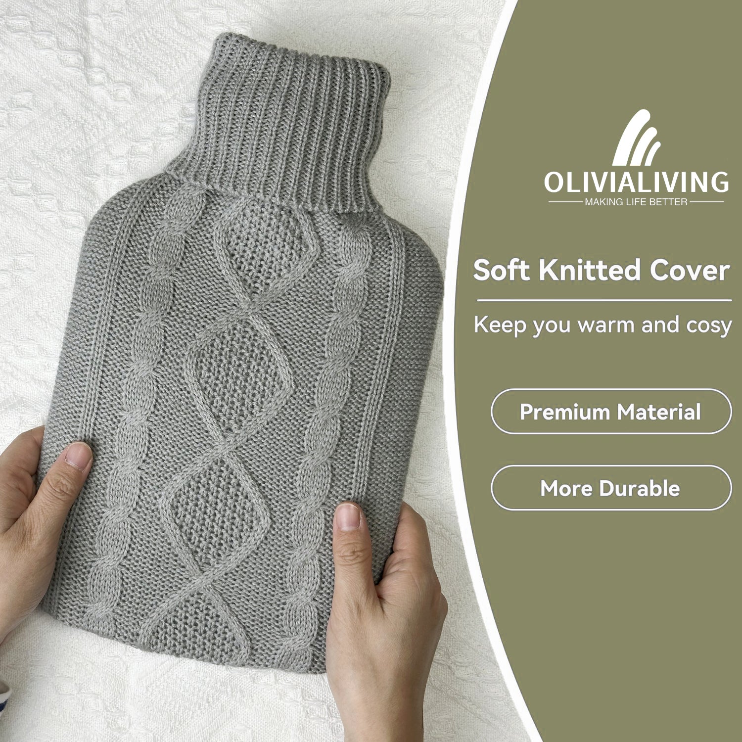 OliviaLiving Classic Knitted Cover Hot Water Bottle for Winter Nights, 2L